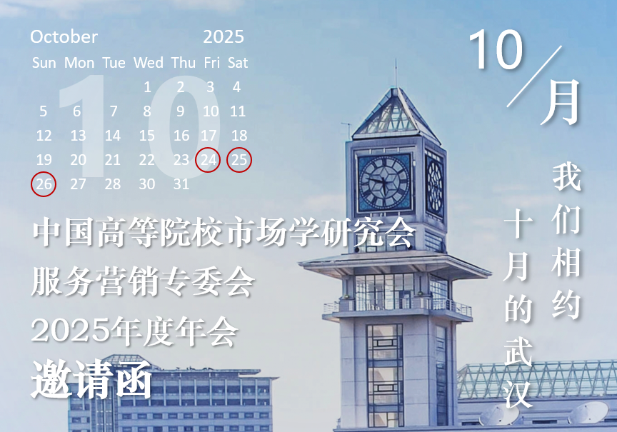 在人工智能技术迅速发展的当下,为进一步促进理论与实践的融合,服务营销专委会将于2025年10月,以“智能服务与新质生产力”为主题,在中南财经政法大学举办理论与实践前沿论坛,共同探索中国特色的服务营销理论体系,持续服务国家高质量发展战略。