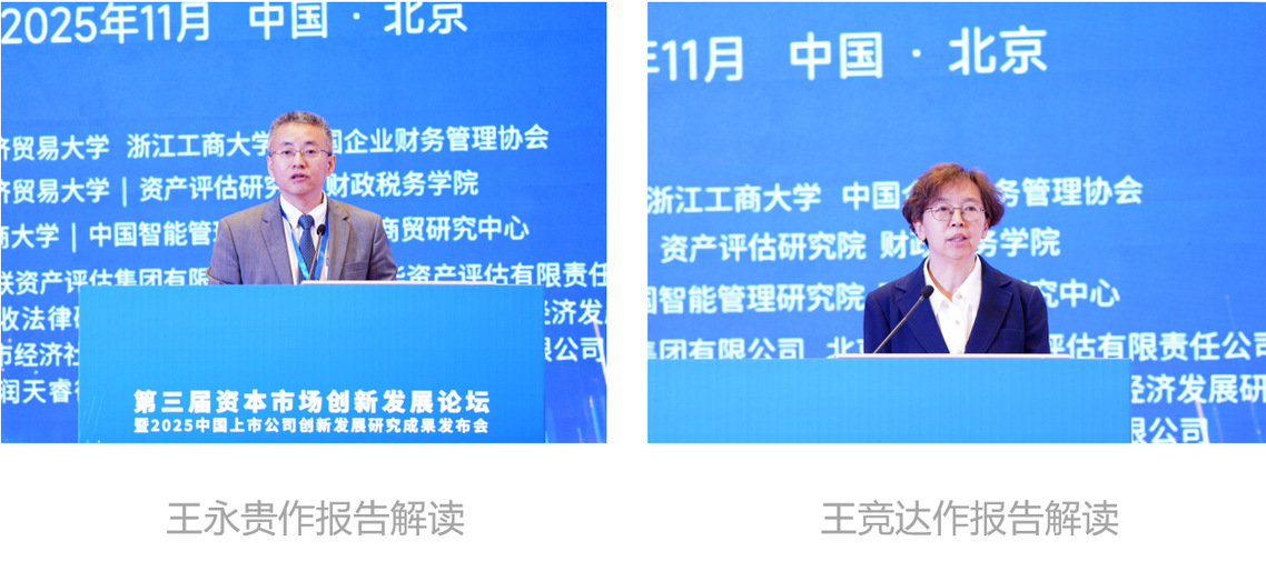 浙江工商大学中国智能管理研究院和首都经济贸易大学资产评估研究院联合撰写的《2025中国上市公司创新发展指数报告》《2025中国上市公司数字化创新评价》和《2025专精特新上市公司创新发展评价报告》在论坛中发布。