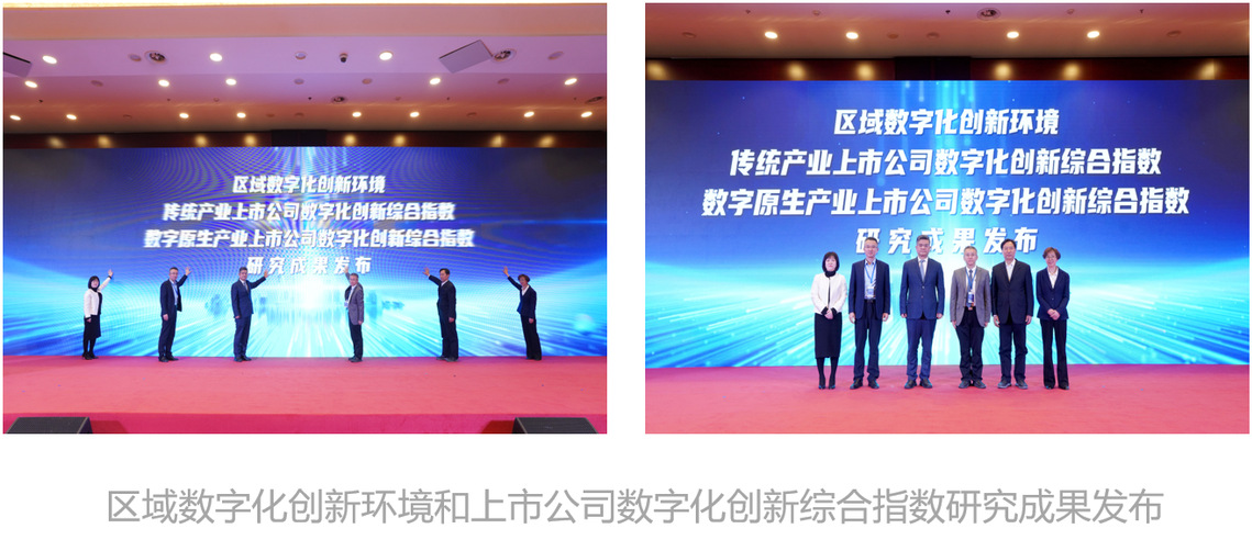 全国政协常委、中国企业财务管理协会会长张连起,中智院院长、现代商贸中心主任兼首席专家、浙江工商大学校长王永贵教授,北京市知识产权局党组书记、局长孟波,北京上市公司协会秘书长李洪海,中国企业财务管理协会副会长兼执行秘书长胡芳,首都经济贸易大学资产评估研究院院长、财政税务学院王竞达教授共同发布“区域数字化创新环境和上市公司数字化创新综合指数研究成果”。